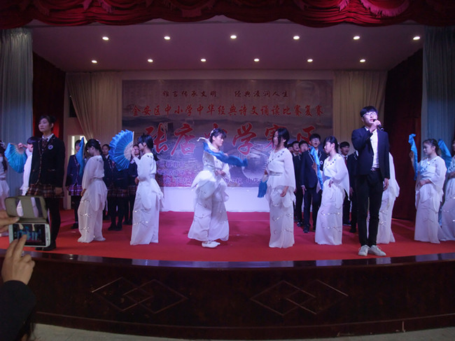 该活动充分展现了我区中小学师生的精神风貌和学习传统经典的成果。最后张店中学献送了经典诵读精彩节目《春江花月夜》。