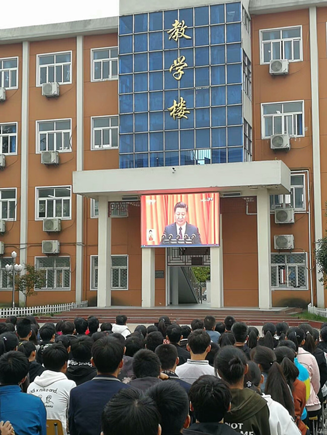 10月18日上午,张店中学全校教职员工和全体学生共800余人集中收看了习近平总书记在中共十九大开幕式上的发言。同学们凝神静气,或注视,或笔记。坐在旁边的老师们或颔首,或微笑。掌声不时的响起。 这次大会的主题是:不忘初心,牢记使命,高举中国特色社会主义伟大旗帜,决胜全面建成小康社会。会后,同学们纷纷表示:我们为生活在这个伟大的时代而自豪,唯有发奋图强,才能在这个时代谱写无悔的青春。(邓启胜)