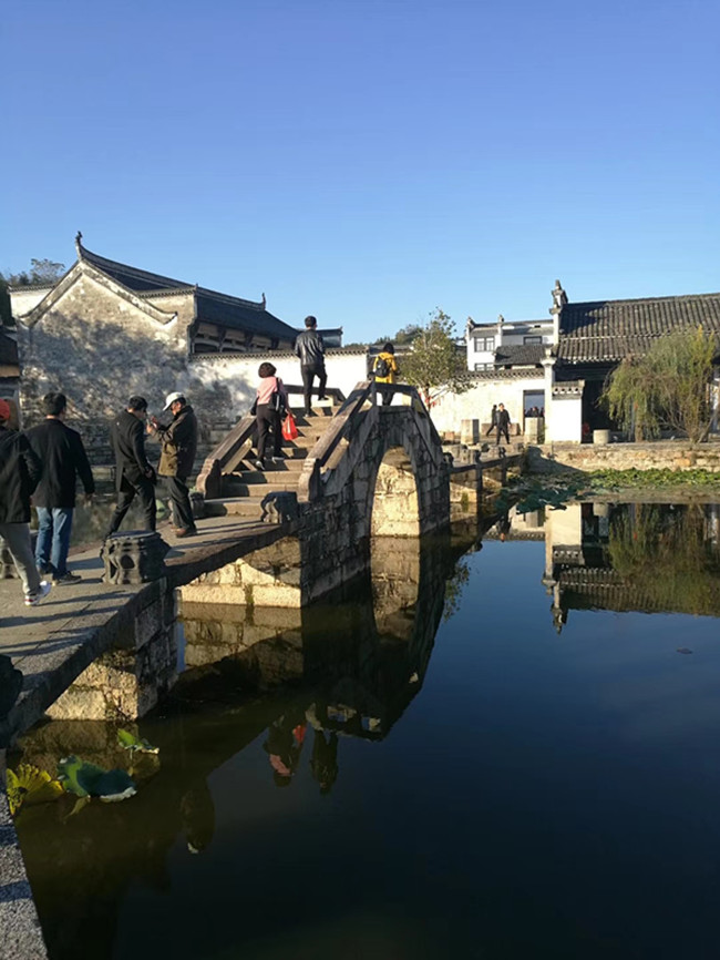 第二站来到潜口民宅。潜口民宅是明代徽派传统民居。潜口民宅在一个小山峦上展示出各类不同的古民居风貌,颇具匠心。然后来到屯溪老街。屯溪老街由不同年代建成的300余幢徽派建筑构成,街巷呈鱼骨架形分布,西部狭窄、东部较宽。2009年,屯溪老街与北京国子监街、苏州平江路一同当选为“中国历史文化名街”。