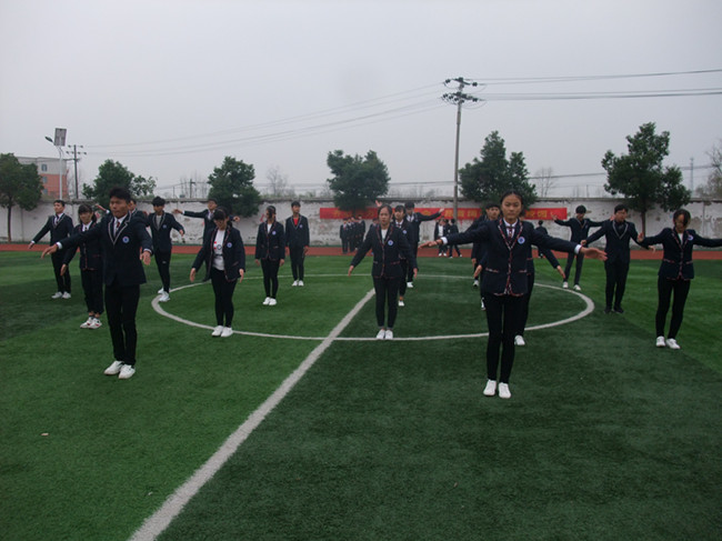 在比赛前,各班为这次广播体操比赛做了充分的准备,他们争分夺秒地训练,精心地编写口号,用实际行动去争取优异的成绩。在比赛中,每个方队都着统一的服装,队形整齐,动作娴熟。他们喊着响亮的口号入场,精神饱满;他们做着一致的动作,齐心合力;他们望着同一个方向,团结奋进。评委秉着“公平、公正、公开”的原则,对参赛班级进行了打分。