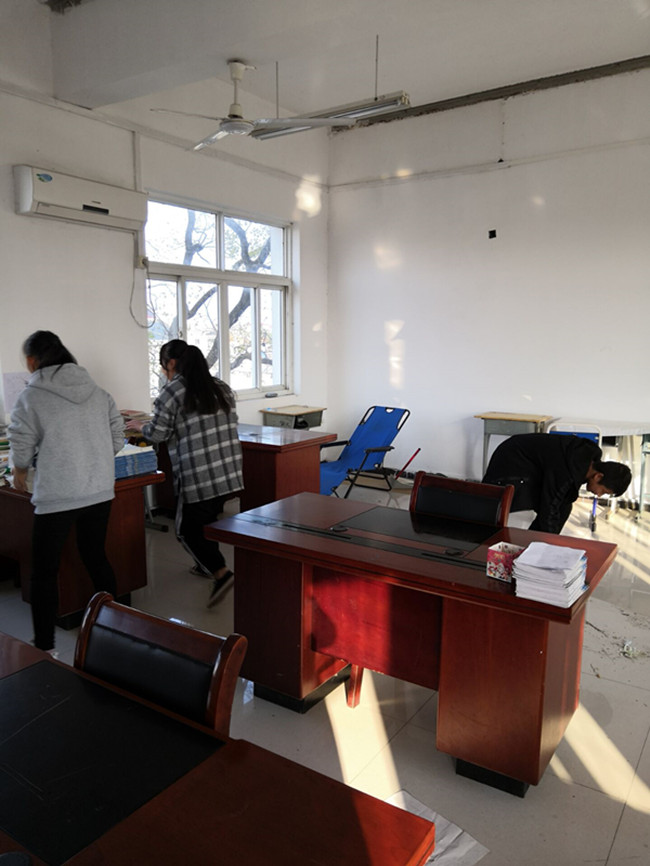 为贯彻落实,《六安市教育局关于启动重污染天气2级橙色预警的紧急通知》,应对接下来的重污染天气,同时给同学们创造一个干净整洁的学习和生活环境,11月28日下午,张店中学校团委组织全校师生进行了一次全面大扫除。 下午3时许,该校教职工、同学们手持扫把、铁铲、簸箕、抹布等清洁工具,三人一组、五人一队,地毯式地扫落叶、捡枯枝、清理泥沙,呈现出一派热火朝天的劳动景象。众人分工合作,协同行动,不放过任何一处脏乱。在整个劳动过程中,认真仔细清理每一个死角,校园的每个角落、教室、办公室、功能室都能看到他们劳动的身影,到处都是一道道靓丽的风景线。充分体现了该校教职工、同学们不怕苦、不怕累、团结协作的精神。 在众人的努力下,卫生大扫除取得立竿见影的成效,教室、办公室、功能室窗明几净,整洁有序,校园面貌焕然一新。(邓启胜)