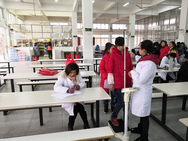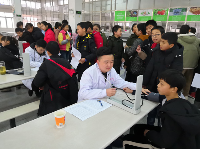 1月7日,张店中心卫生院医生们来到张店中学为该校学生健康体检。