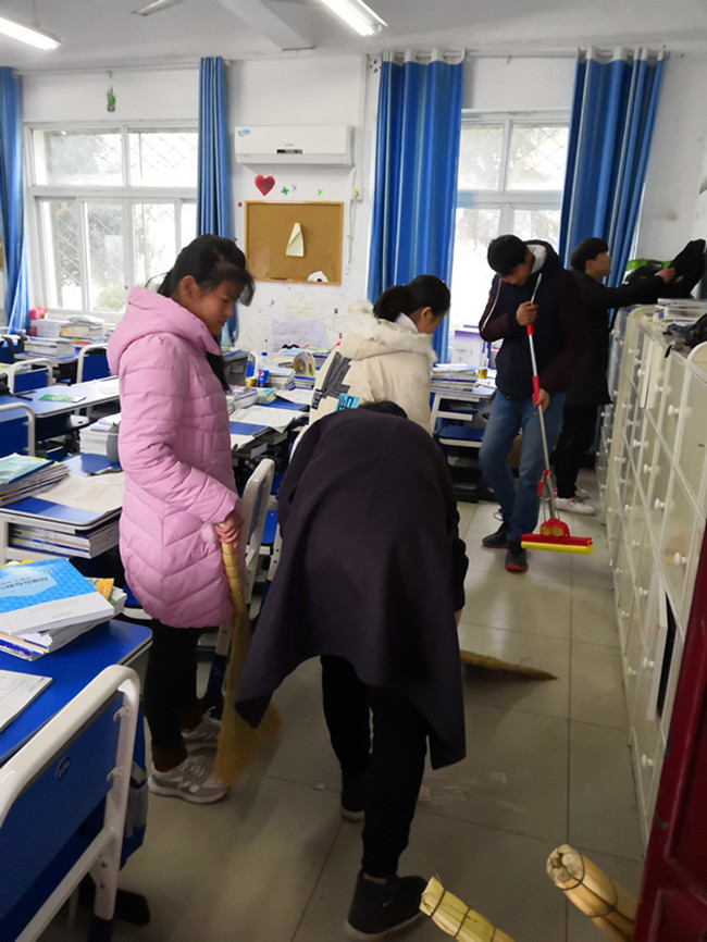 2月20日,是新学期开学的第三天,下午,张店中学组织全体学生进行了校内环境卫生大扫除。