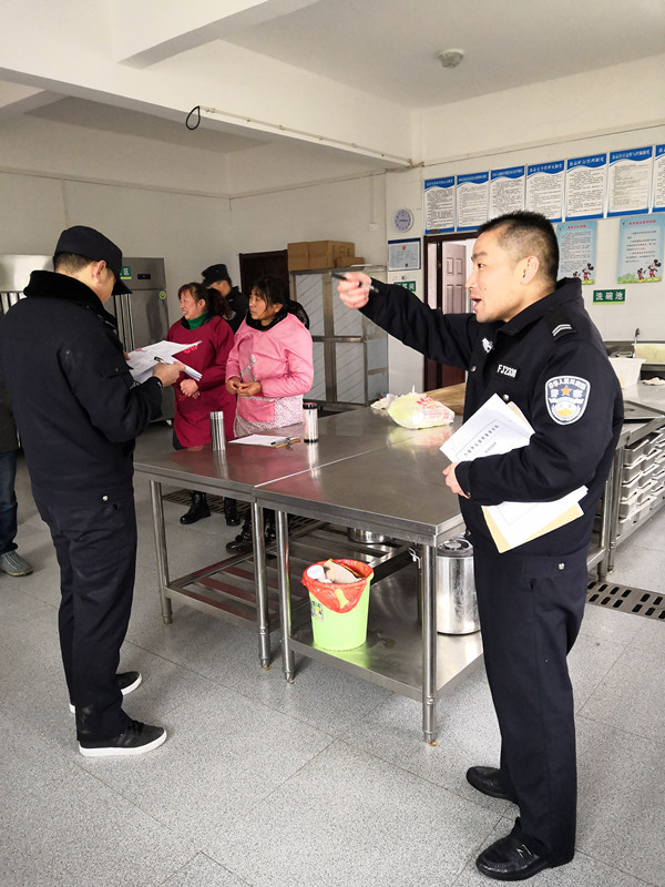 检查中,民警分别对门卫室防护装备、进出入登记情况、学校饮用水、食品卫生、食品留样、监控进行状况、走廊窗户、安全防范制度和防范措施落实情况等进行了全面细致的检查,并认真询问解了校园周边治安情况,督促指导学校完善日常安全管理制度。