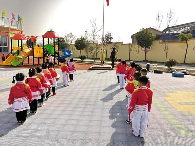 张店镇中心幼儿园重视对孩子的爱国主义教育,每周都要举行升国旗仪式,通过升国旗仪式,让孩子们了解国旗、国歌等,增强爱国主义意识。