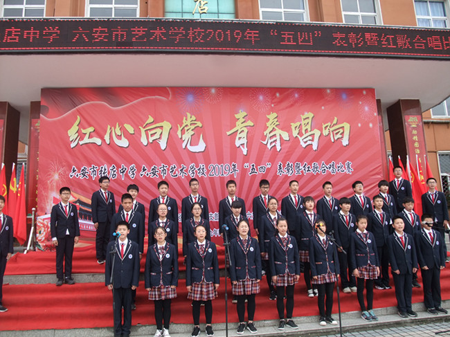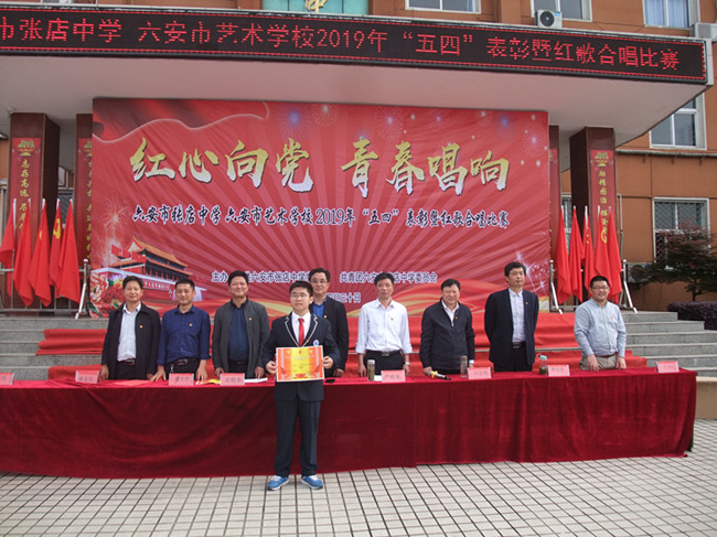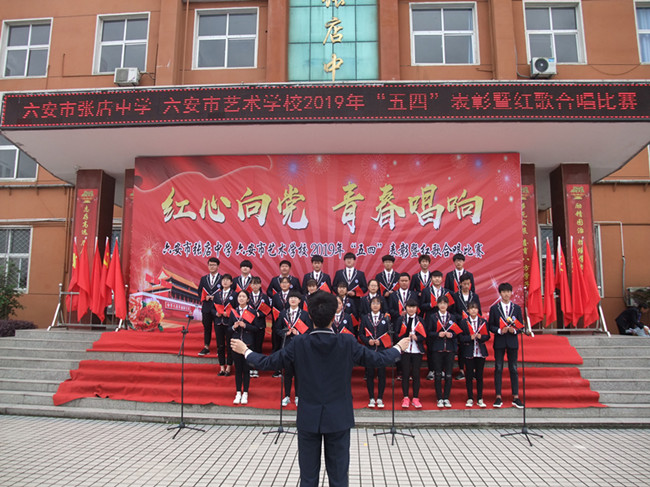 4月30日下午,张店中学暨六安市艺术学校“红心向党,青春唱响”合唱大赛在校红旗广场隆重举行。舞台气势恢宏,台上演出紧张激烈,台下掌声阵阵,处处洋溢着热烈欢快的气氛。学校领导班子成员出席比赛现场。