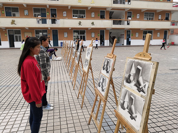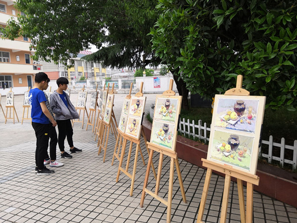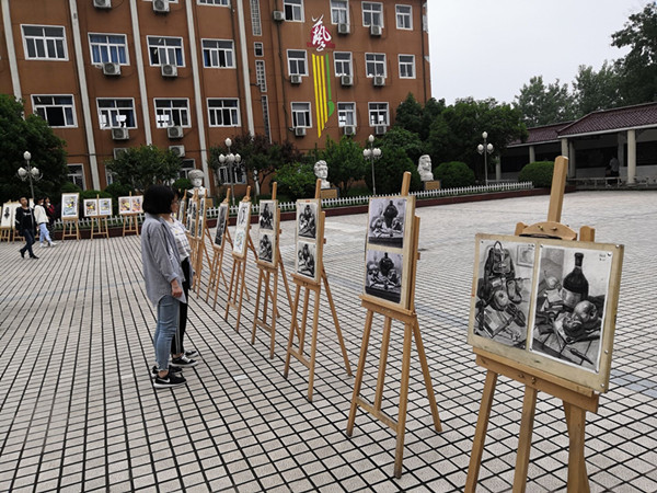 5月16日,六安市艺术学校在教学楼前广场举行2019年师生美术作品展。
