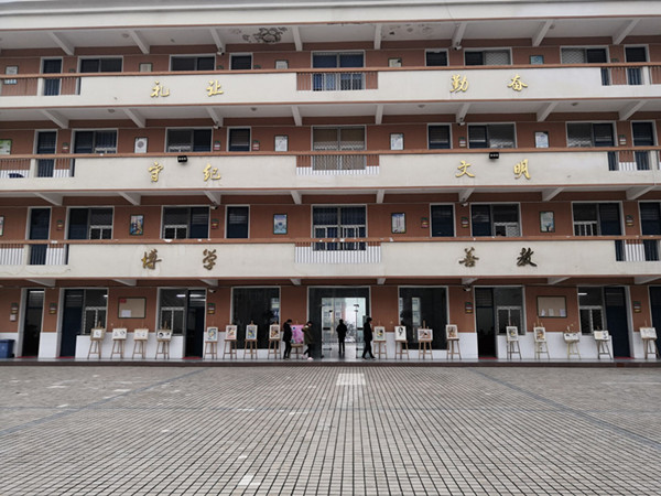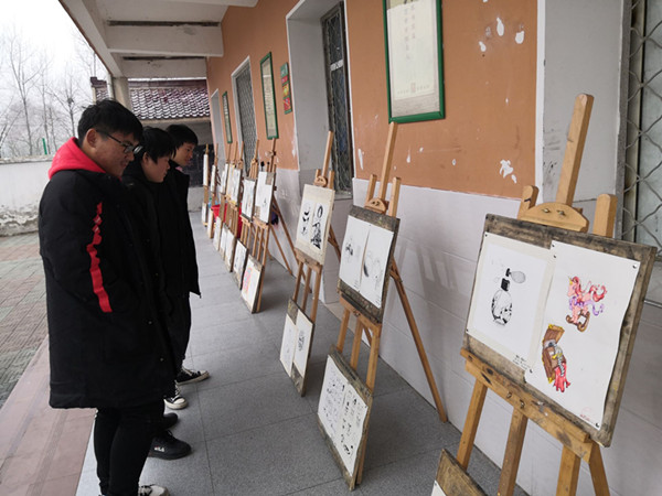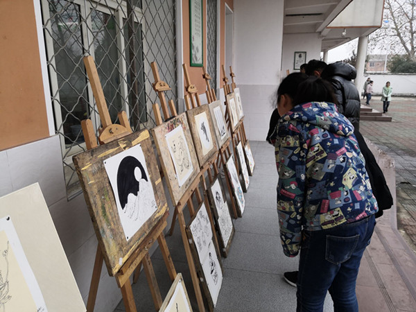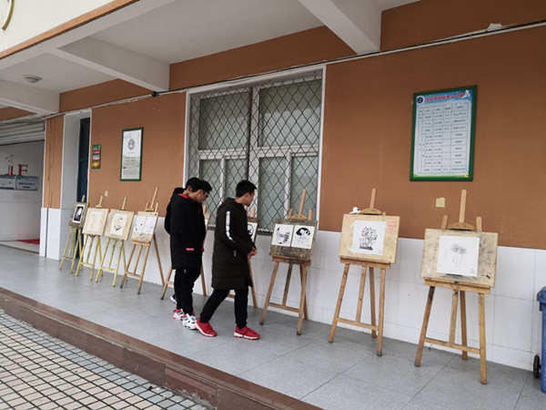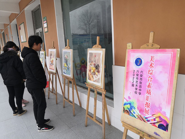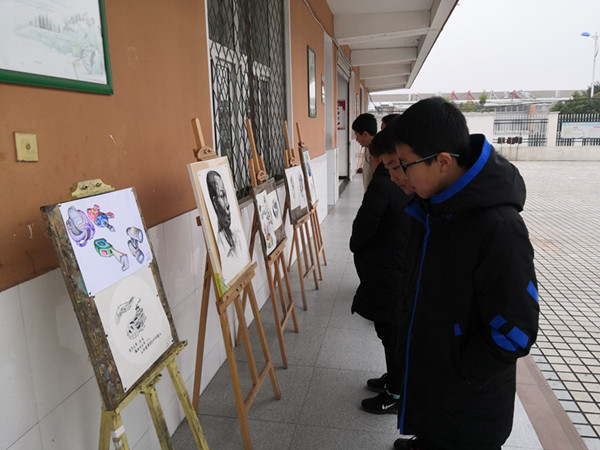 1月2日,张店中学在教学楼前举行学生美术综合素质汇报展览。