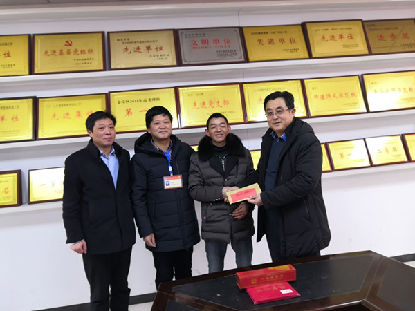 最后,韩军、市、区、学校领导向张明全老师送上新年的祝福和慰问金。(邓启胜)