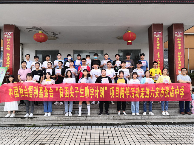 7月5日上午,六安市张店中学举行中国福利基金会“贫困尖子生助学计划”项目资金发放仪式。副校长严帮军、左益斌、校团委书记毛用三、工会邓主席等参加了仪式。