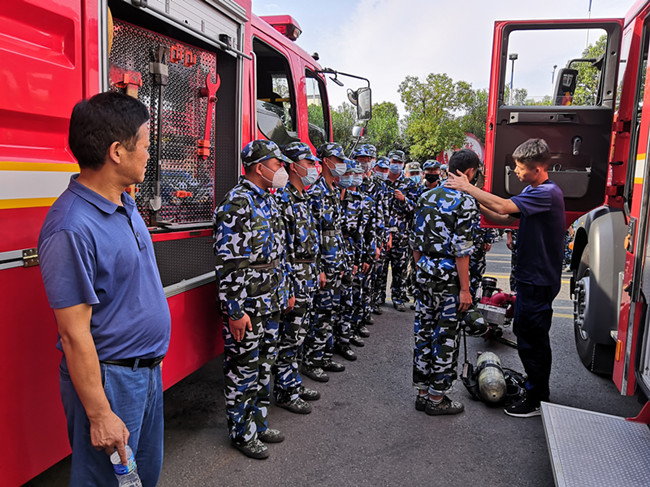 接着,又驱车来到了六安市开发区消防总队。走进大门,五、六辆不同类别的消防车一字排开,消防官兵们热情的为同学们打开了所有消防车的门,各种消防工具琳琅满目,消防官兵们为同学们介绍了消防工具的功能,并现场演示了消防工具的用法,还让同学们亲自体验、尝试用法,通过参观,同学们对消防官兵、消防知识有了更深的认识。