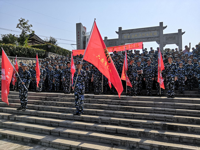 9月6日上午,六安市张店中学开展军训活动中的徒步拉练科目。400多名2020级新生,被分成9个连队,从学校出发,沿着芮张路、六毛路、张家店战役烈士陵园、洪山大市场徒步行军,拉练总行程约10公里。